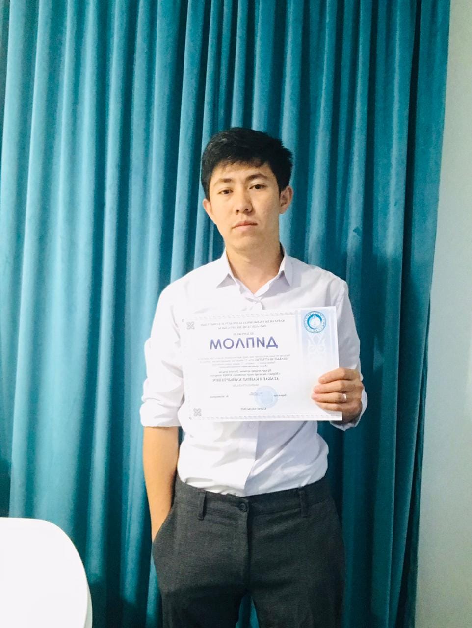 Диплом 1 орын Республикалық «Ұлағат» балалар мен жасөспірімдер сайтындағы өткен байқауда үздік жұмысымен табысқа жеткені үшін Ерболат Мадияр марапатталады 2022ж.