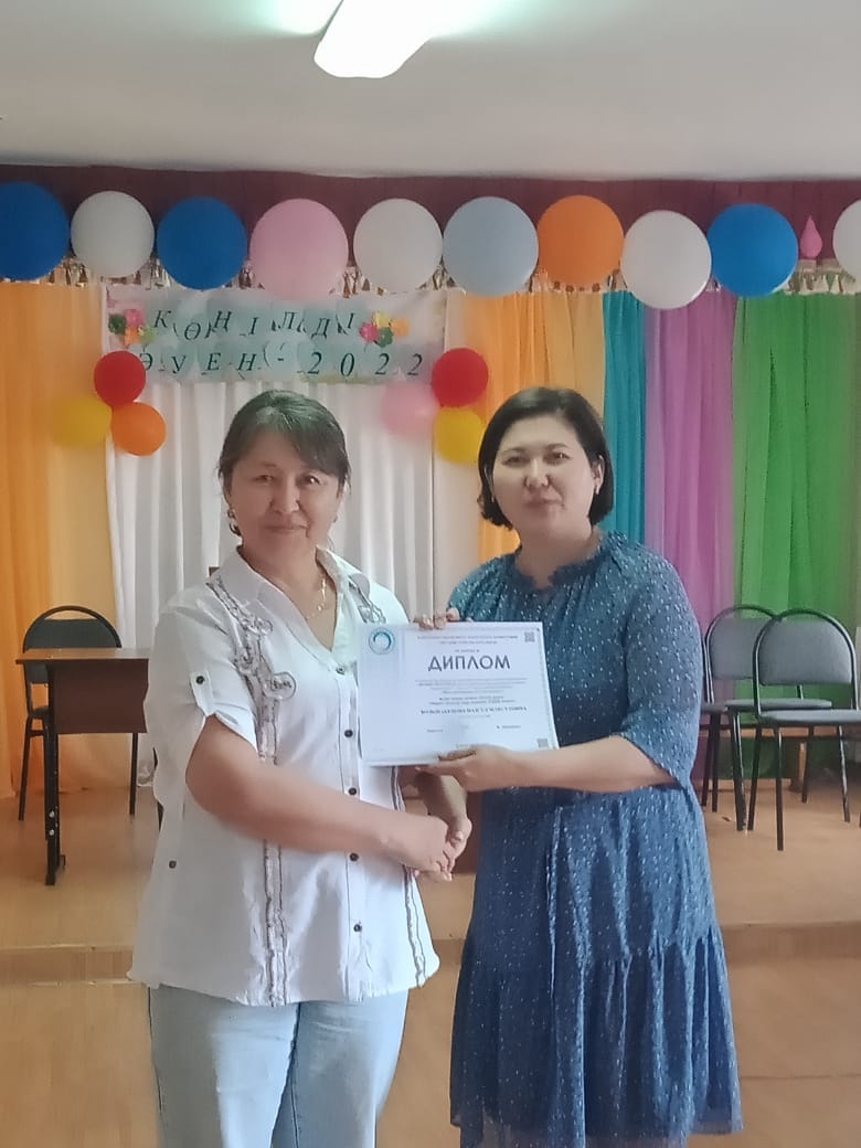 Диплом.Республикалық «Ұлағат» балалар мен жасөспірімдер сайты ұйымдастырумен өткен шығармашылық байқауына шәкірттерді дайындағаны үшін.2022ж.