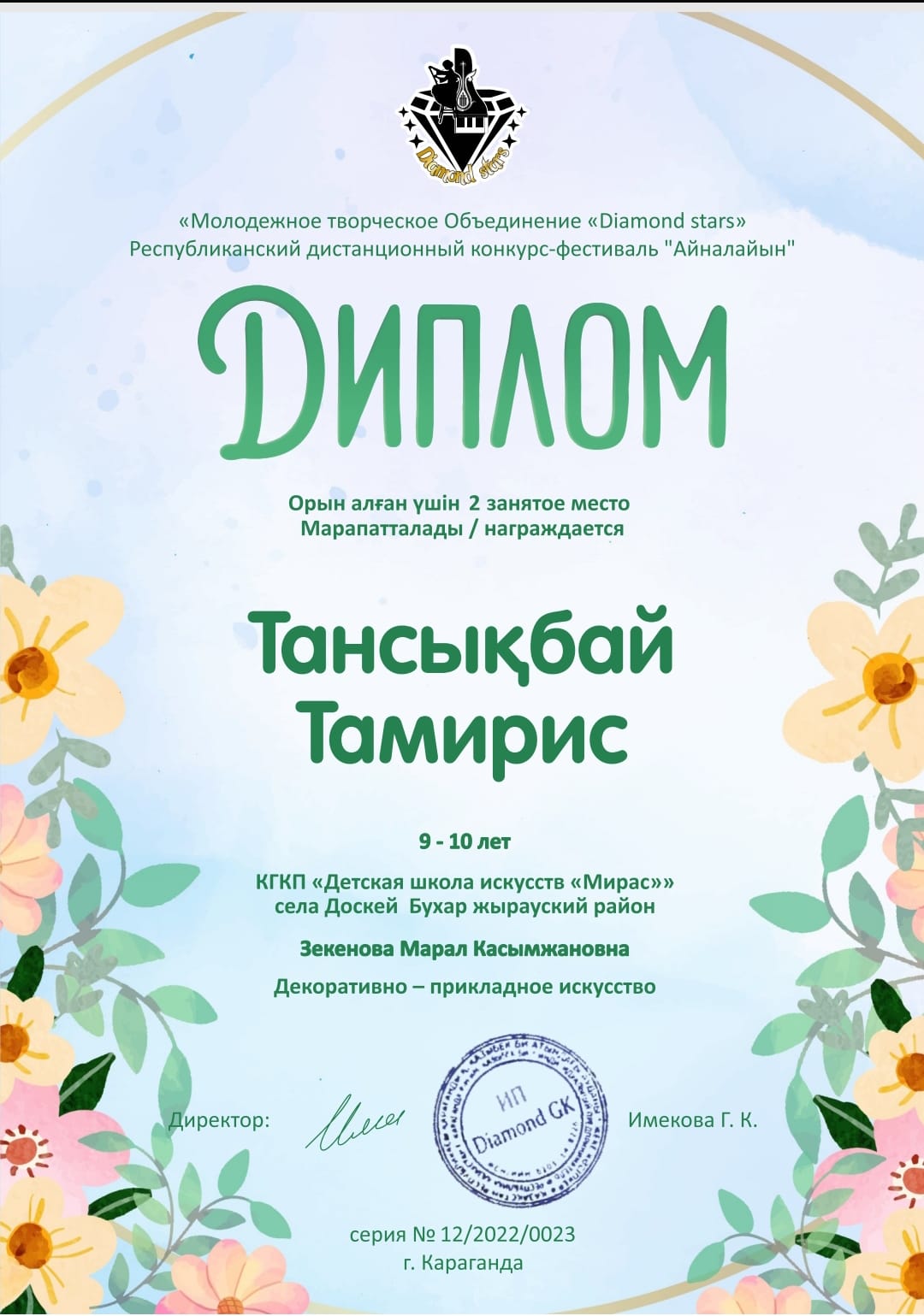 Доскей ауылының «Мирас» балалар өнер мектебінің Сәндік- қолданбалы өнер «Қос алқа» сыныбының оқушылары Ашық Республикалық «Өркен» шығармашылық байқауынан Сарсен Мархаба III-орынға ие болды. Республикалық «Айналайын» фестиваль-байқауынан Тансықбай Тамирис II-орынға, Ерубаева Фариза I-орынға ие болды. Құттықтаймыз!! Шығармашылық табыстар тілейміз!!