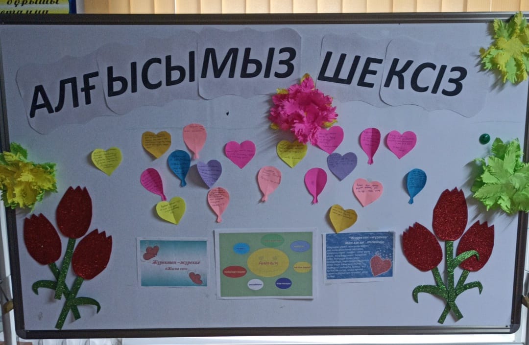 "Мирас" балалар өнер метебінде тәрбие ісі жөніндегі меңгерушісі Зекенова М.К-ның ұйымдастыруымен "Алғысым шексіз" атты оқушыларға арналған бұрыш безендірілді. Оқушылар өздерінің жүрек жарды тілектерін жазды.